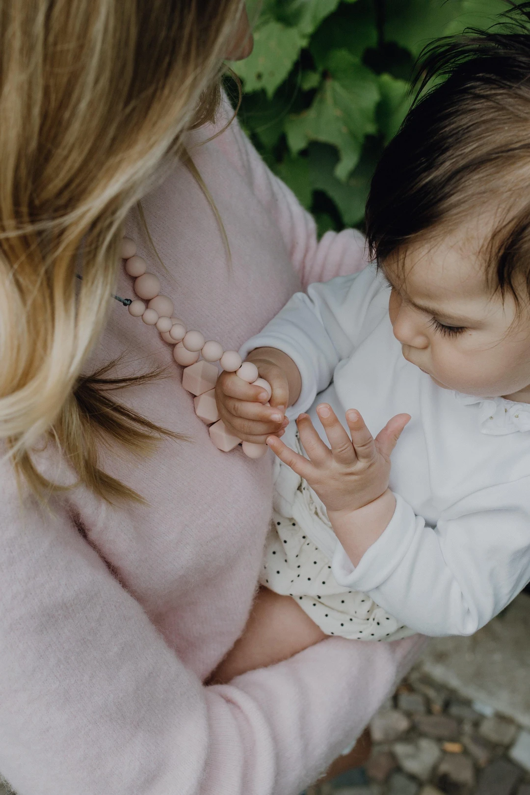 - En portage, le collier canalisera l’attention de votre bébé. Cela évitera qu’il ne détourne sans cesse la tête. Et développera sa motricité fine et son éveil.